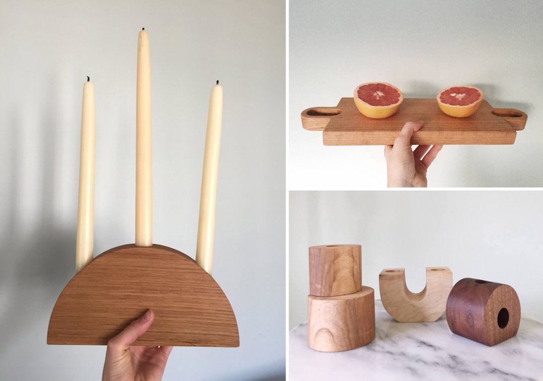 Woodworker Alex Clarke brings out the natural beauty of local Wisconsin hardwoods in her collection of smooth handmade candle holders, hair combs, and decorative wall hangings inlaid with constellations. A one-woman operation, Alex attends to every part of the process herself: cutting, sanding, and finishing with food-safe linseed oil and beeswax.