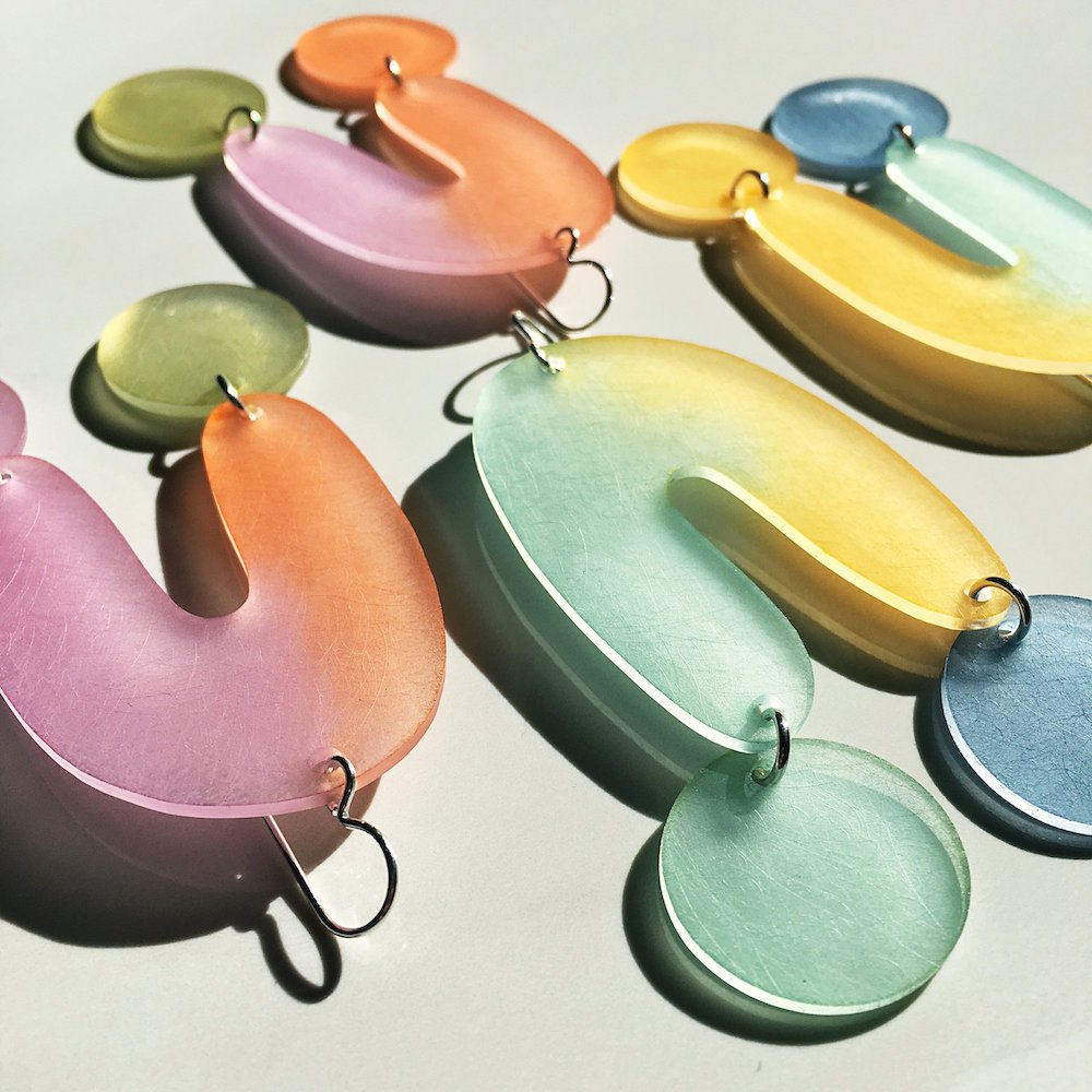Picture a playful sketchbook doodle come to life, and you’ve got KT Woodling Jewelry. Each cheery, oversized pair of earrings is made in Minnesota with sterling silver wires and polystyrene shapes in ice-cream-cone hues (which means they’re surprisingly lightweight to wear). Shopping for a fun-loving fashionista? Look no further.