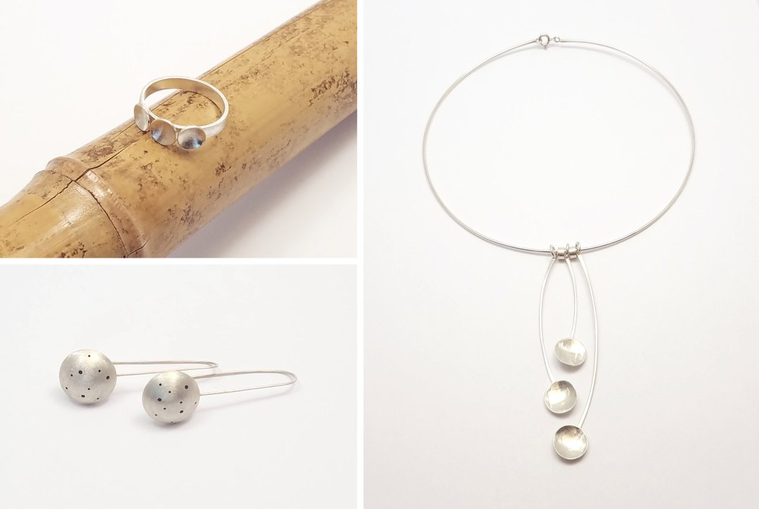 Silver is the star of Texas-based Güe Jewelry. Drawing inspiration from the shapes and textures used by modern artists such as Henri Matisse, Paul Klee, and Alexander Calder, Gabriela Vilaboa’s silver rings, necklaces, and earrings exude an understated elegance.
