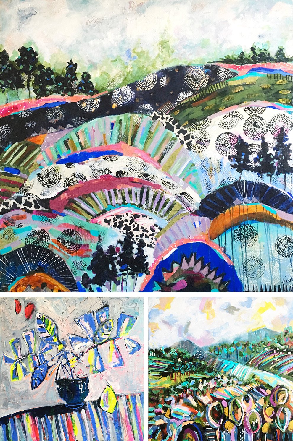 Inspired by Florida’s lush nature, Nina Ramos makes textural paintings layered with thick, expressive paint strokes for her shop, Green Studio Blue. Her cheery canvases veritably radiate color.