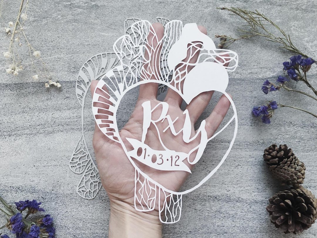 Honor a milestone—be it a wedding, anniversary, or birthday—with custom papercut artwork or a state-shaped celebration map lovingly crafted from crisp white paper. Paperhugger Studio’s Yang Cuevo individually cuts every flower petal, leaf, and letter of her intricate pieces by hand with a precision cutting knife in her tiny home studio in Chicago.