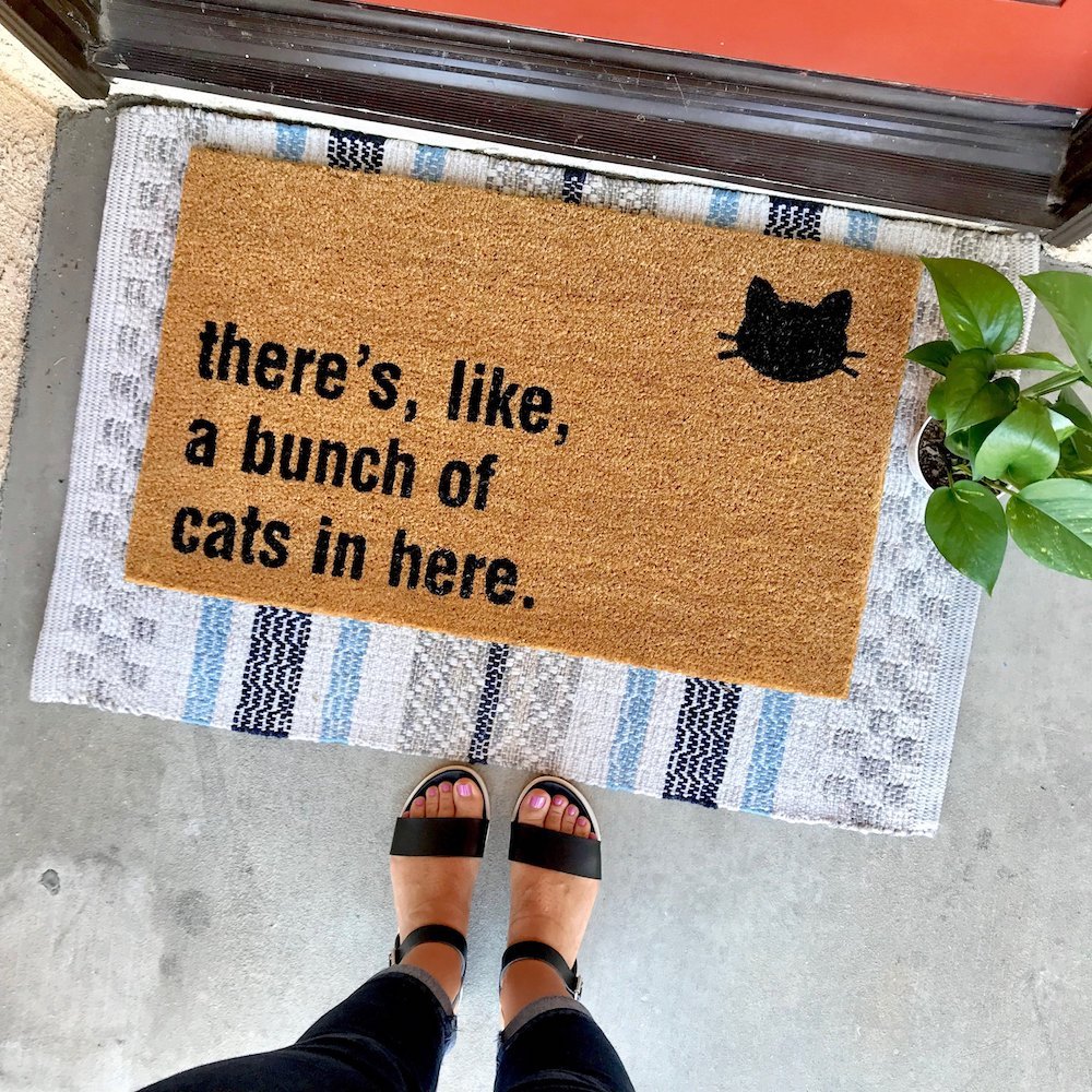 Fair warning or the ultimate welcome? Judging by the number of likes for this feline-forward find from The Cheeky Doormat (currently 42,591), we’d say it’s the latter.